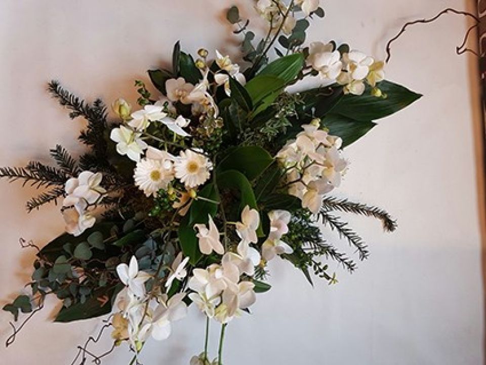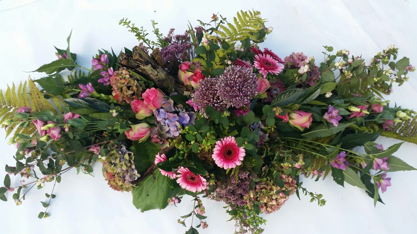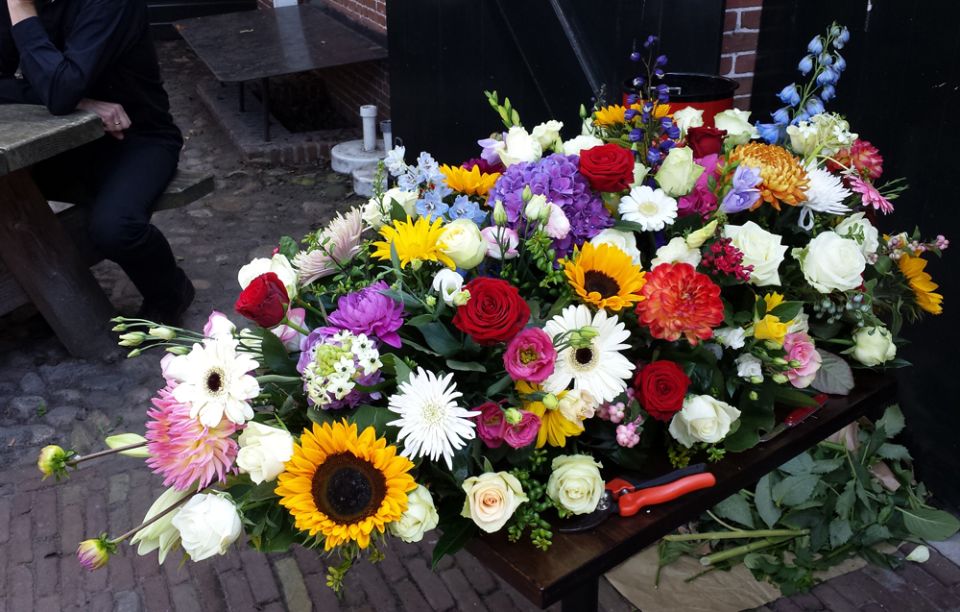 Elke bloemist kan voor u een bloemstuk verzorgen. Wij kunnen dat voor u bestellen maar uiteraard kunt u dat ook zelf doen. Daarnaast hebben we goede contacten met een free-lance bloemist die op verzoek bloemstukken levert voor Achaat. Zijn specialiteit is het maken van bloemstukken van eigen bloemen, bijvoorbeeld uit de tuin of uit het veld. Hij kan ook van bloemen die door belangstellenden bij de uitvaart meegenomen worden, één gezamenlijk bloemstuk maken.